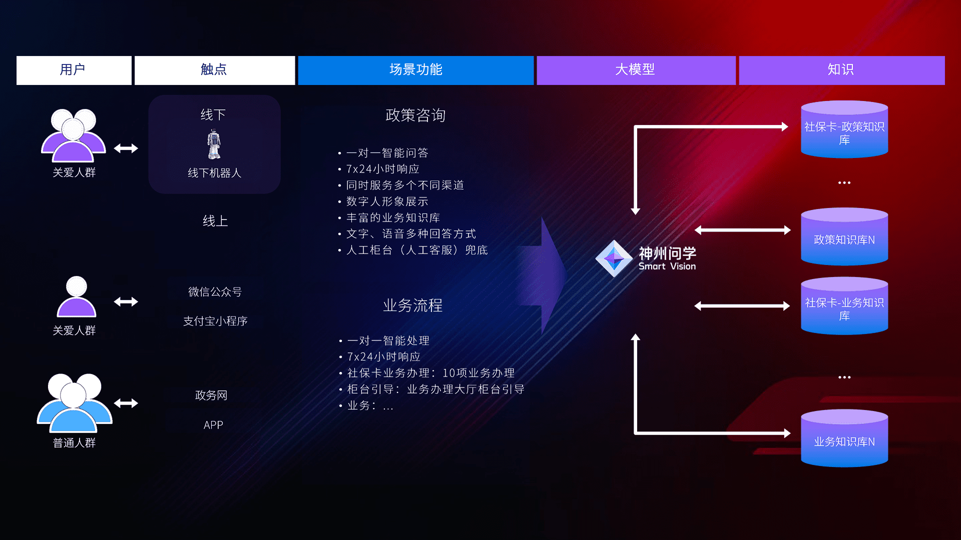 • 线上线下全覆盖:线上提供微信公众号、、支付宝小程序、、、政务网、、、app多种渠道,,与线下机器人形成完整服务体系。。。